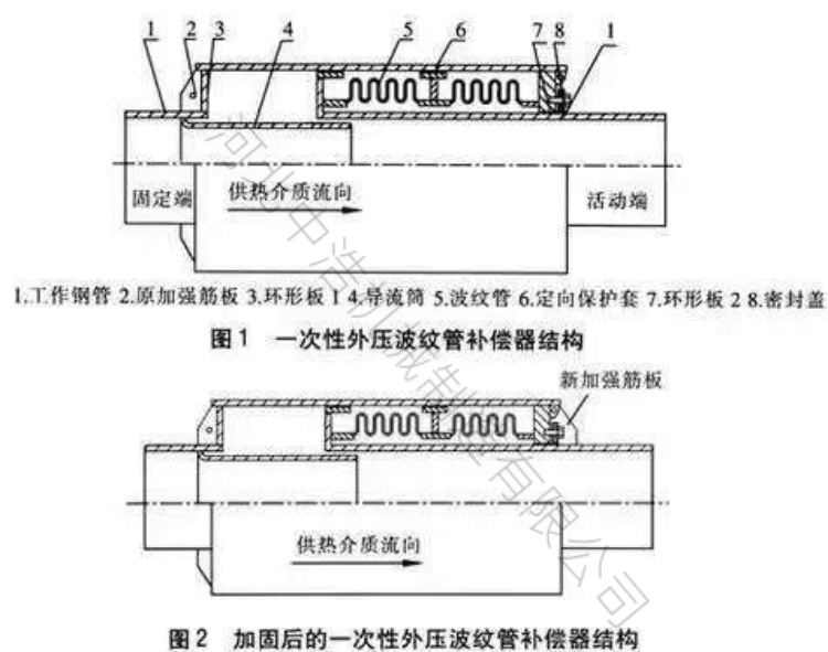 北方城市供熱管網(wǎng)改造,直埋管道深埋大1.5米以上,既要承受深層土壤擠壓壓力又要考慮-20℃-30℃巨大溫差,這種工況下的波紋補(bǔ)償器,需要在套筒端管增加梯形加強(qiáng)筋,而梯形加強(qiáng)筋可以增強(qiáng)補(bǔ)償器抵抗形的能力,可有效解決管網(wǎng)土壤壓力和溫差應(yīng)力雙重疊加,導(dǎo)致補(bǔ)償器焊縫開(kāi)裂和波紋變形等問(wèn)題。
